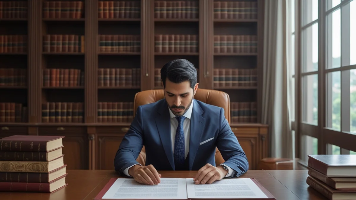 Advogado revisando contrato de prestação de serviços para formalizar alteração de escopo em projeto empresarial.